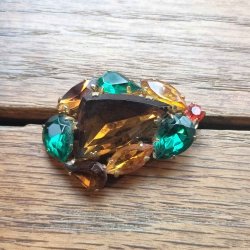 Vintage halsband gröna orange beige stenar agat? skruvlås gulmetall