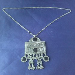 modehalsband av oäkta snäckor, sten, plast, glas och metall längd: 60 cm