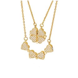 Halsband. Längd på kedjan är 40cm plus 4cm. Guldpläterad rostfritt stål. Bär halsbandet som en fyrklöver eller fyra hjärtan på rad.