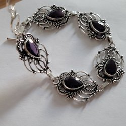 Mycket vackert hängsmycke med rundslipade, äkta ametister med vacker lila färg.