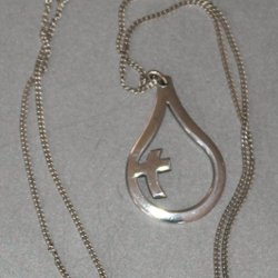 Ett kors av silver. Stämplar i ringen.