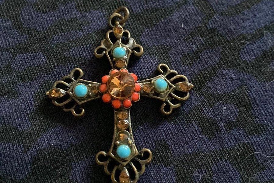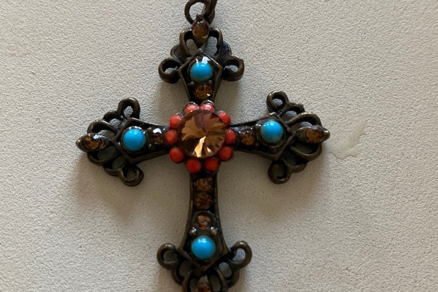 Fint kors med turkoser och andra stenar 4,5 x 3,5 cm