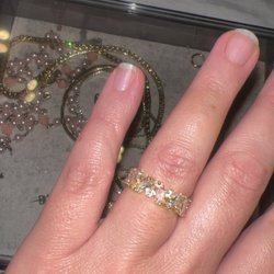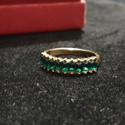 Elegant ring prydd med gnistrande gröna och vita stenar. Perfekt för att addera en touch av färg och glamour till din stil. En vacker accessoar för både vardag och fest.