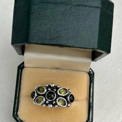 Ring med gröna stenar. Passar perfekt som en klapp.