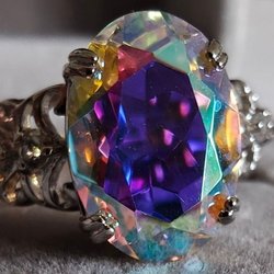 I mitten sitter en stor, rektangulär Smaragdgrön Kubisk Zirkonia. Färgen är mörk och mystisk, och slipningen fångar ljuset på ett elegant sätt. Skenan är vackert mönstrad med en struktur som påminner om drakfjäll eller hamrat guld, vilket ger ringen en rå och exklusiv karaktär.