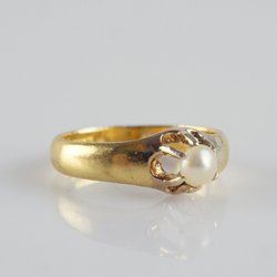 RING, 18K, Ø17,2mm, 4,22g, Vit pärla, guld, b:3,9-7,5mm.