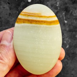 Med en hårdhet på 6,5-7 på Mohs skala är sardonyx en hållbar sten som tål hantering väl. Den högpolerade ytan framhäver stenens vackra bandning och karakteristiska färgövergångar.