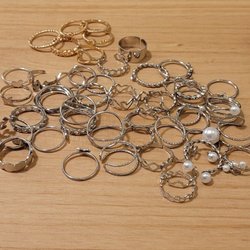 Silver smycken parti. Inkluderar ringar, armband, halsband och en sked. Vikten är 53 gram.