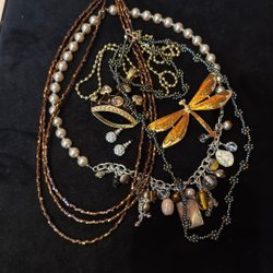 Mycket smycken, det finns örhängen, halsband och armband + 7-9 ringar ungefär.