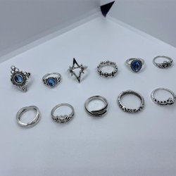 16st snygga silverfärgade ringar med olika former och mönster för hela handen, unika!
