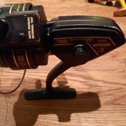 Fiskerulle av modellen Ryobi 3000. Utrustad med linspole och vev. Passar för olika typer av fiske. En praktisk och funktionell rulle för fiskeentusiaster.