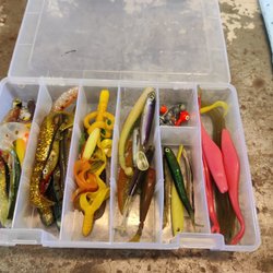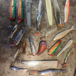 Dom 2 till vänster är oöppnade, det till höger är näst intill nyskick, något av dragen har lite skav. Spinnare och öringdrag.