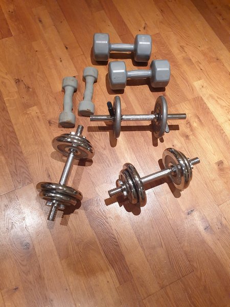 Ett set med hantlar i olika storlekar och vikter. Perfekt för hemmaträningen.