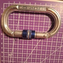Stabil och välgjord klämma i aluminium med handtag för kontrollerad rörelse på rep.