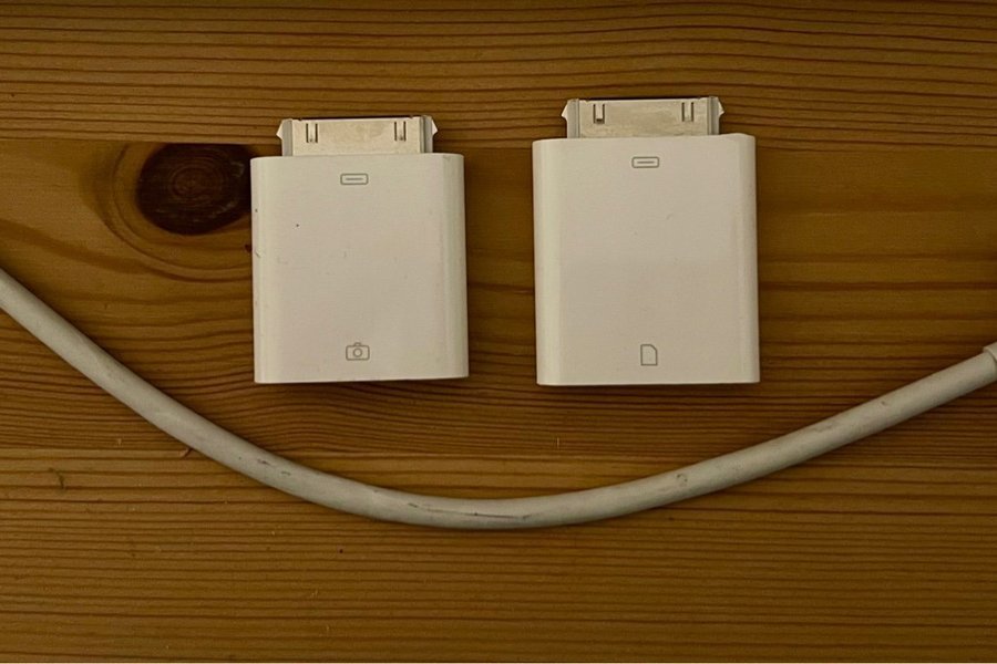 Adaptrar för iPad/iPhone med Lightning eller föregående gamla avlånga 30-pin-kontakten.