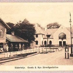 SMEDJEBACKEN. Järnvägsstation och nya skolan, 2-bildskort 1905