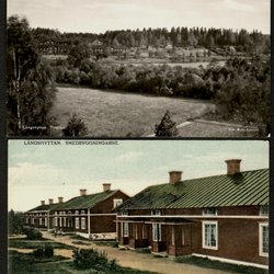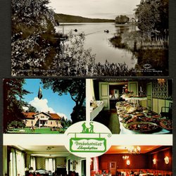 Korten på bild 2, det vänstra kortet bild 3 och korten bild 5 är oskrivna. Det understa kortet bild 5 har klister- och pappersrester i hörnen på baksidan. De postgångna korten är stämplade på 1940 och 1950-talet.