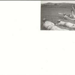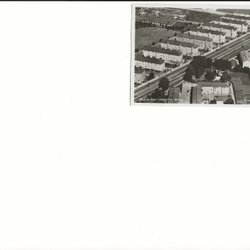 Svartvitt fotografi föreställande en grupp människor. Baksidan har en handskriven text och frimärken.