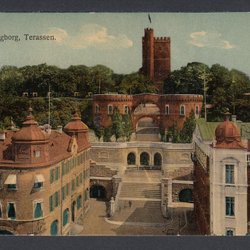 Luleå. Motiv från Stadshuset med terrassen. Äldre kort från tiden.