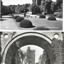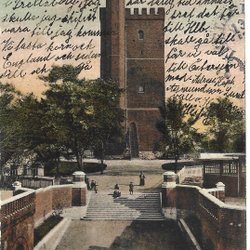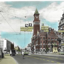Vykort av Hälsingborg, Förutortsplatsen med Gustaf Adolfsskolan. Klihage Etsks. Hfg. No. 12753