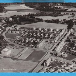 HAGLUNDSTORP. Flygfoto över gården, fotovykort 1959 (Nyköping)