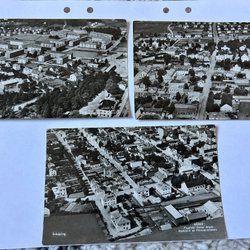 Vykort med motiv från Umeå. Korten visar olika vyer över staden, inklusive byggnader och landskap. Ett av korten är poststämplat 1987.
