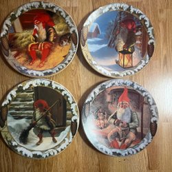Fyra julkort med motiv av Anders Olsson. Korten är tryckta på baksidan med information om konstnären. Insidan av korten har tryckta julhälsningar. (Kuvert ingår ej )