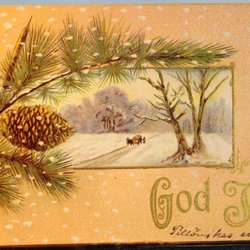 Ett julkort med motiv av en väderkvarn och ett vinterlandskap. God Jul
