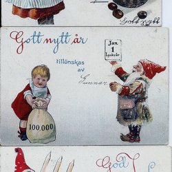 Parti med vykort med motiv av barn och texten "Gott Nytt År". Korten är postgångna.