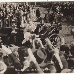Ett vykort med ett fotografi av två kvinnor. Vykortet är poststämplat och har en handskriven text på baksidan.