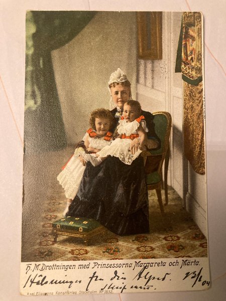 Ett fotografi av Drottningen med Prinsessorna Margareta och Märta. Axel Eliassons Konstförlag, Stockholm N:o 1832.