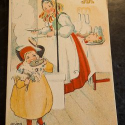 Adina Sand. Pierrot spelar banjo Tutu-dans. Minikort med kuvert. PS 25/12-19??