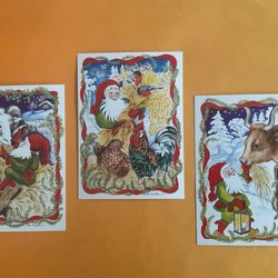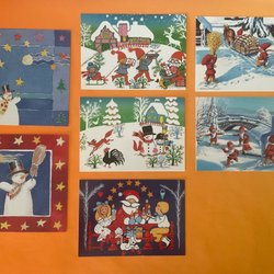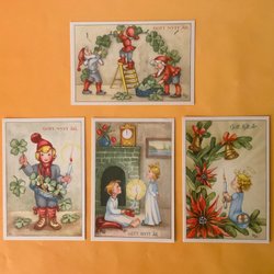 JULKORT. OSKRIVNA KORT. Vykort. Rune Wenliden. 3 kort med kuvert. Tomtar. Retro