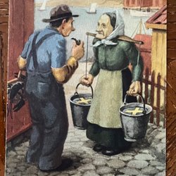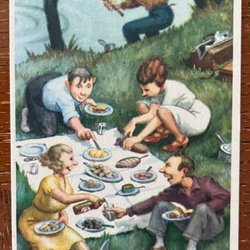 3 vykort , ett är skrivet med frimärke och två små former ( 13,5 x 8,5 cm ) oskrivna .
