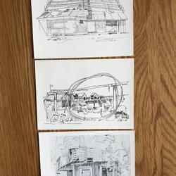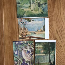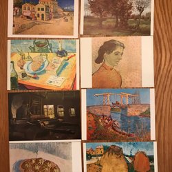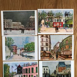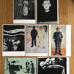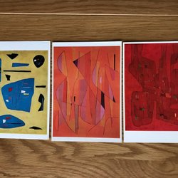 En samling konsttryck med abstrakta motiv i varierande färger och former. Trycken har en unik stil som kan passa bra som dekoration.