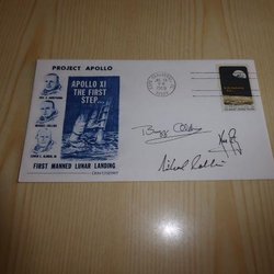 Rymd, kuvert. Apollo 11 autografer är tryckta.
