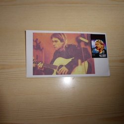 Kurt Cobain, "custom bild". Vit baksida. 300 gsm papper. Autograf är tryckt. + en gratis Kurt Cobain konst poster, storlek A4.