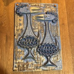 En dekorativ plåtskylt med Coca-Cola motiv. Skylten visar en kvinna som dricker en Coca-Cola.