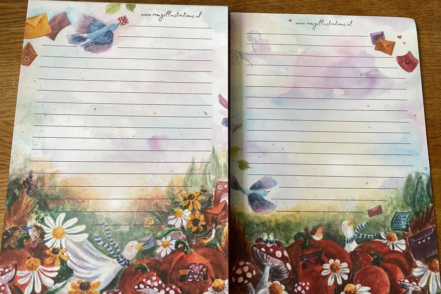 Säljer här 5 dubbelsidiga papper i A5,bilden visar fram och baksida.