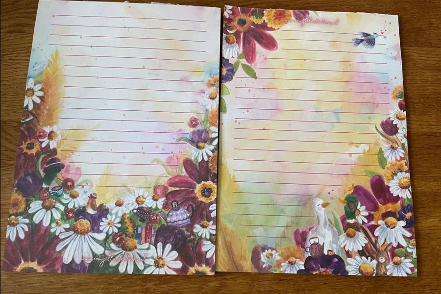 Säljer här 8 dubbelsidiga papper i A5,bilden visar fram och baksida.