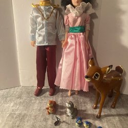 Säljer en My Scene docka med kläder och accessoarer. Dockan har lockigt hår och bär en rosa topp, svarta byxor, ett bälte och silverfärgade stövlar.