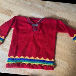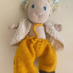 En klassisk Cabbage Patch Kids docka från 1978-1982. Tillverkad av Coleco Industries, Inc. Dockan har en brun tröja med gröna detaljer och rött hår. Signaturen finns på kroppen.