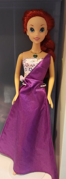 Ariel docka med lila klänning. Har batterilåda i ryggen dock ej testad. Fint skick.