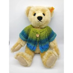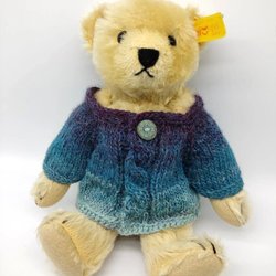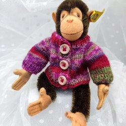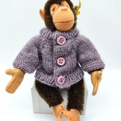 Tröjan är gjord av ullgarn och den knäpps med två tryckknappar på ryggen.