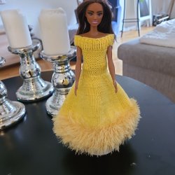 gul stickad klänning