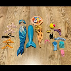 Detta set innehåller olika tillbehör till exempelvis Barbie eller liknande dockor.