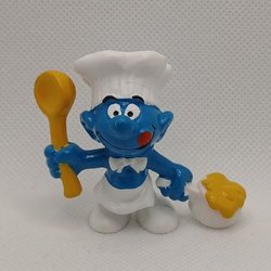 En smurf i kockkläder med en slickepott i handen. Perfekt för samlaren!