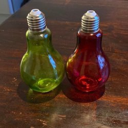 Två Smurfar figurer säljes. Den ena har röda byxor och den andra har gula byxor.