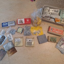 42 stycken små tennfigurer varav två hästar. Målade och omålade o varierande skickar. Ca 2,5 cm stora