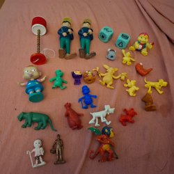 Olika figurer. Chap Mei pirater (saknar en års till båten ). Mindswallower Gormiti , Bamse ( lilleskutt med kikare) etc.
